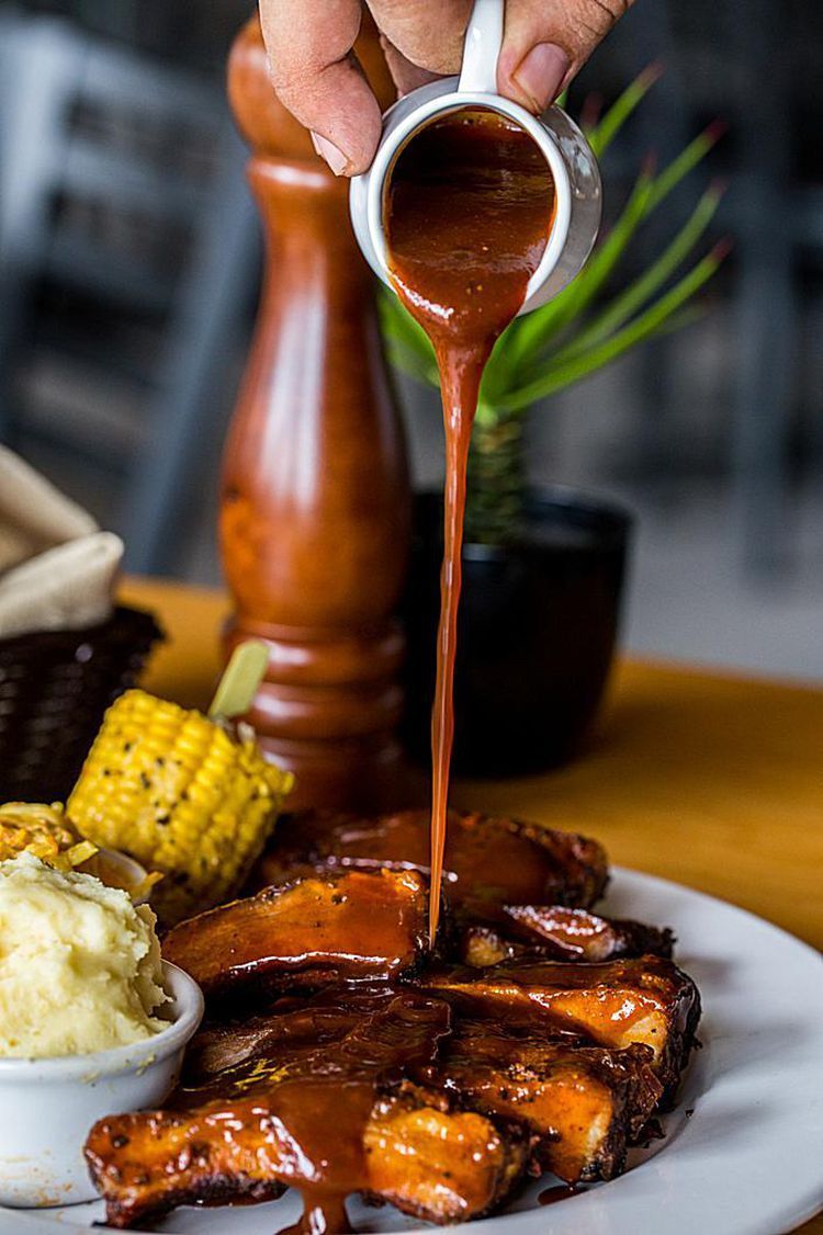 Após 1 hora e meia retire o papel alumínio e pincele molho barbecue por toda a costelinha, continue pincelando o molho a cada 15 minutos.